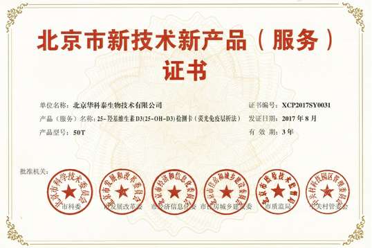 25羟基维生素D获得双新认证;